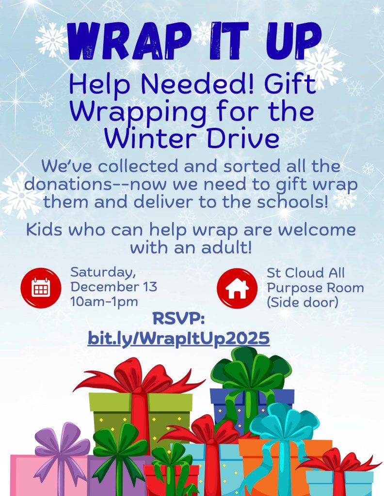 Help Us Wrap Gifts This Saturday, December 13, For The Winter Gift Drive – RSVP here