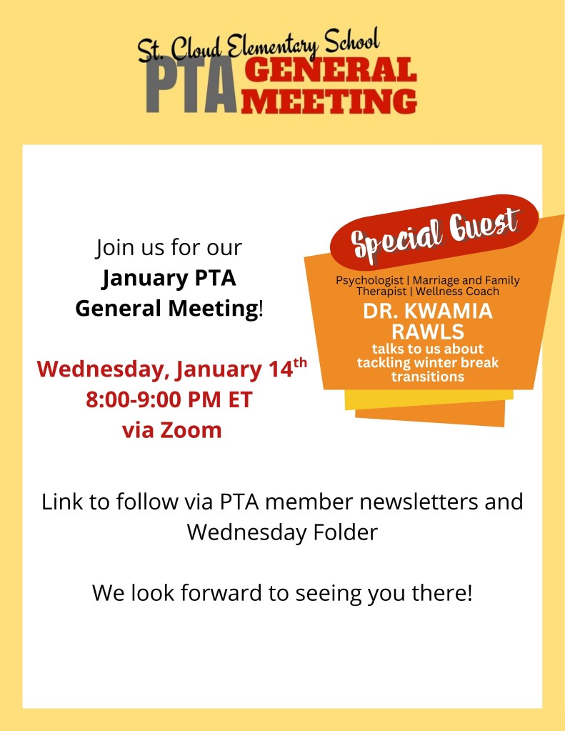 Join Us Tomorrow For Our January PTA General Meeting On Zoom